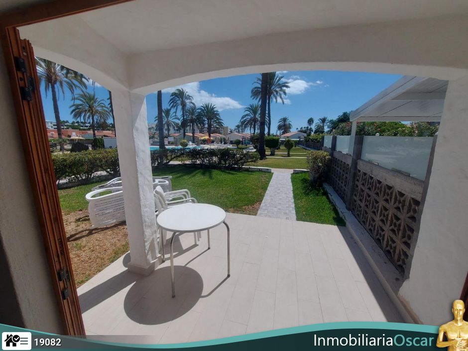 We present this excellent bungalow located a few meters from the YUMBO shopping center and in the heart of Playa del Inglés. This is a single-story corner bungalow, completely private, with 1 bedroom (with the possibility of expansion), a bathroom, a living room, a kitchen, and a large private terrace/garden. It is furnished and equipped for residential use or for rental purposes. The complex has several swimming pools, one of them heated, green areas, lounge areas, and private parking. It is adjacent to all types of service areas, restaurants, a supermarket, a pharmacy, etc. Don't miss this great opportunity. The information provided is merely indicative and may be subject to some type of error or omission. You can see more properties at www.inmobiliariaoscar.com