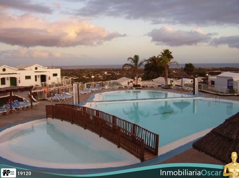 On the lower floor, you'll find two additional bedrooms, a cozy open-plan living room and kitchen, and a bathroom. The excellent location within the complex allows you to enjoy the communal areas, which include a swimming pool, solarium, and parking. Although it needs renovation, this bungalow has great potential to adapt to your style and needs.
